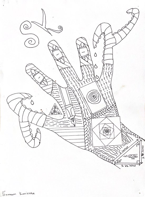 ZENTANGLE HAND – FOUNTAIN PEN ON PAPER – 9" x 12"