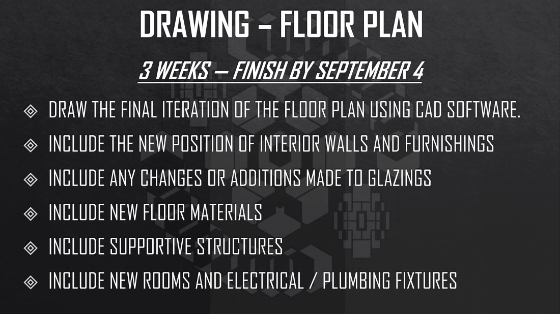 Finally, I implemented these solutions into a remodeled floor plan. Because I did not have any construction documents for the current scheme, I had to measure everything by hand, including all the dimensions of the building.
