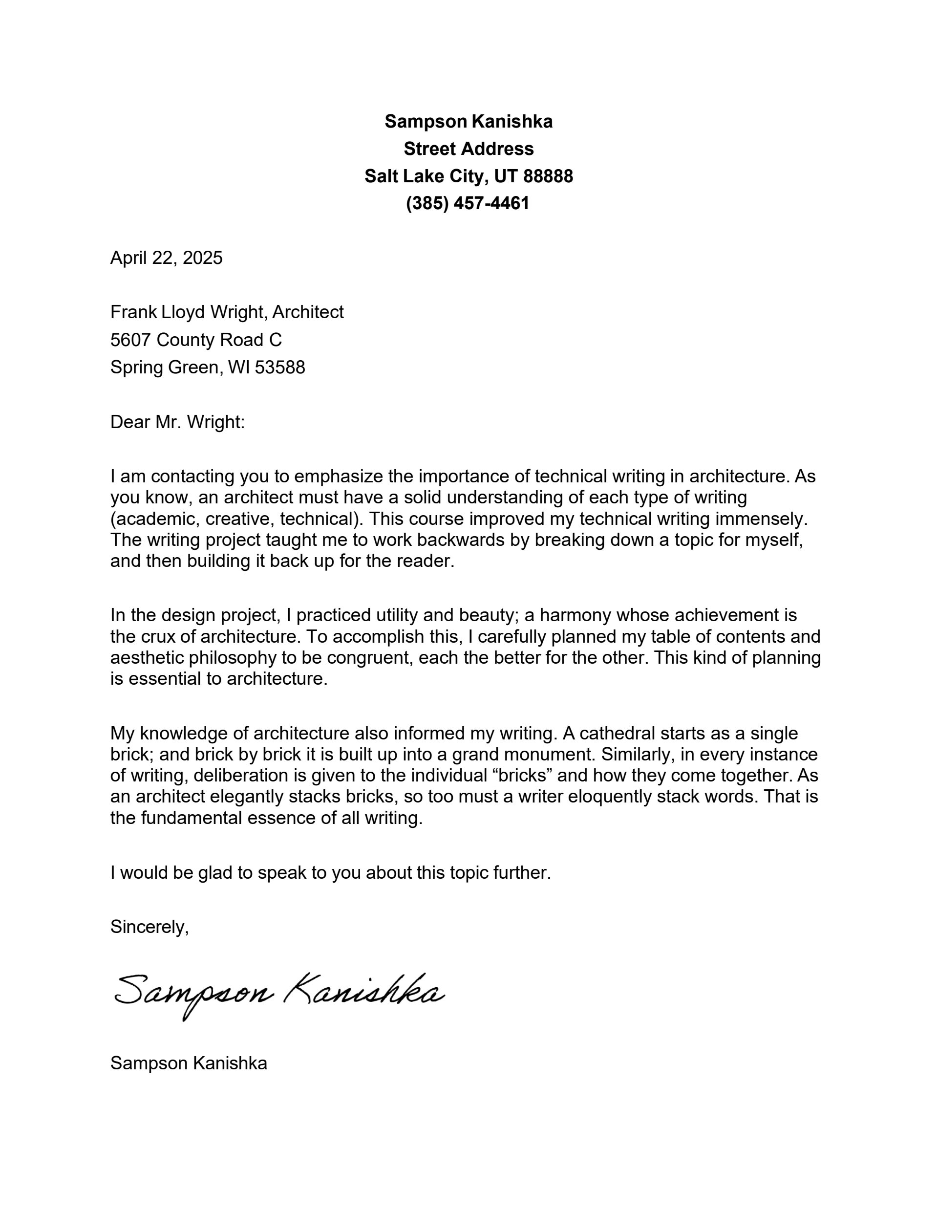 This course teaches writing as it pertains to technical papers, such as reports, construction documents, manuals, and employment materials. It prepares students for writing in professional contexts, as contrasted with academic or creative contexts, and observing how rhetoric is applied distinctly to each.